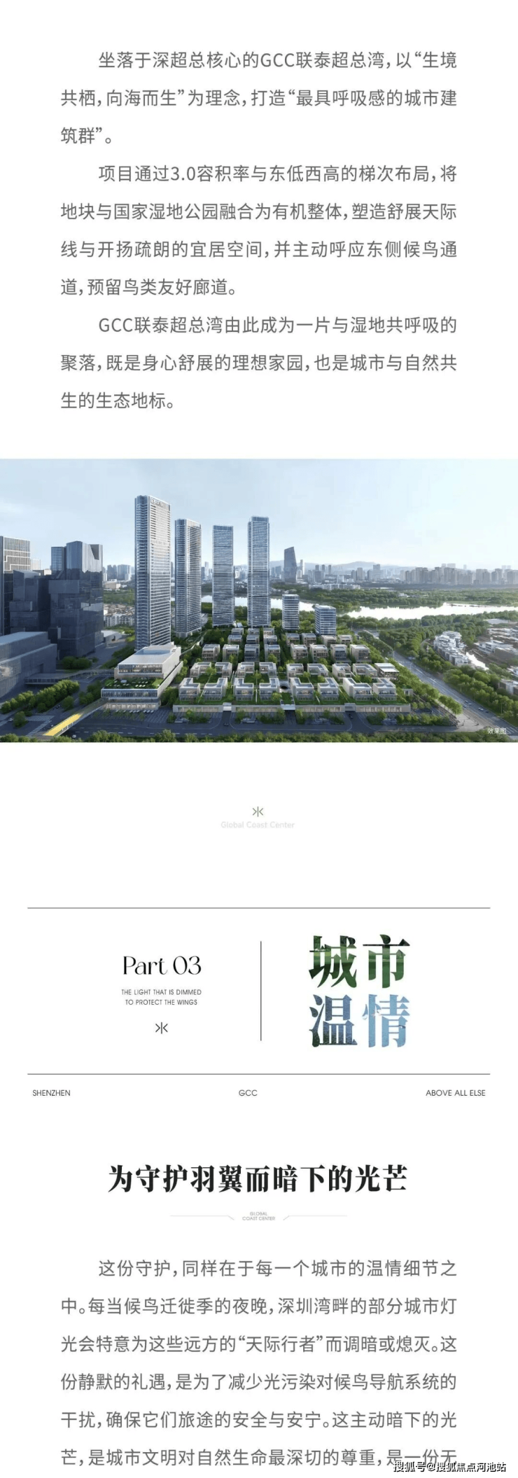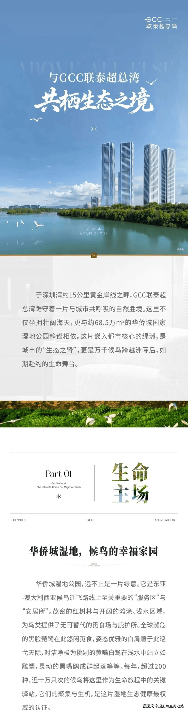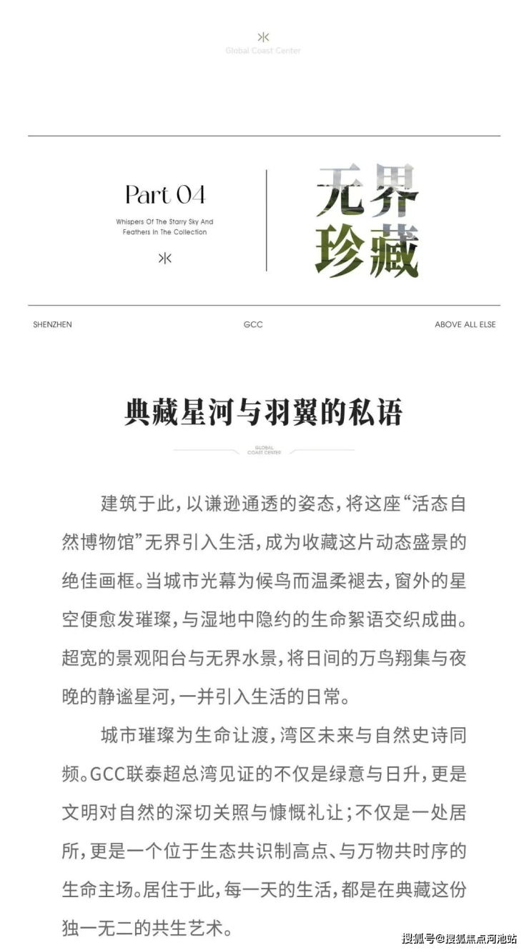 GCC联泰超总湾以约9.2万㎡土地,打造出容积率仅3.0的低密产品,在超高密度的深超总,充分释放海景、湿地、公园等复合景观资源,打造出一片纯粹、宁静、难以复制的湾区奢居藏品。