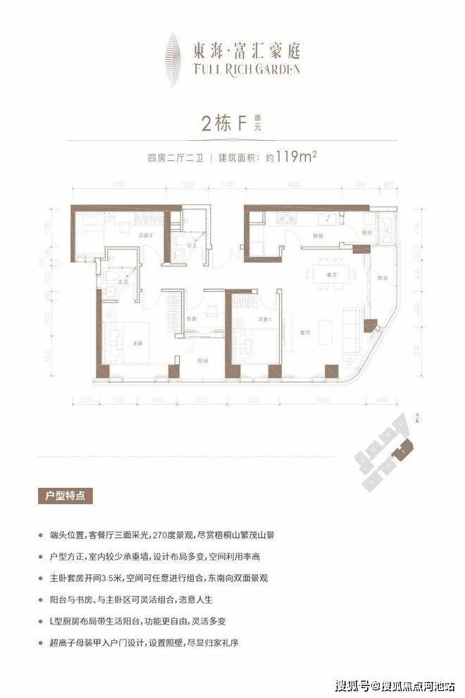 大部分户型设置约6米长超大尺度开间阳台、三面采光。约118㎡以上的大部分户型拥有三面采光,超270°景观视野。