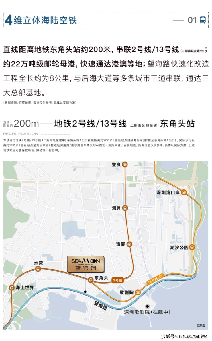 • 交通便利:望海玥距离地铁 2/8 号线东角头站仅 200 米,2 站可到海上世界。未来 13 号线开通后,将直达深圳湾口岸,通勤效率高1。