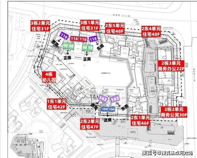 这次准备推售百合世纪广场二期(B-02地块),总占地面积约3.6万㎡,总建筑面积约27.03万㎡,计容建筑面积约19.38万㎡,容积率5.38,绿化率40%,共由3栋7个单元组成,总高是31-48层的住宅,其中1栋1单元住宅42F,1栋2单元住宅47F,2栋1单元住宅46F,2栋4/5单元住宅48F,3栋1/2单元住宅31F,另外2栋2单元公寓30F,2栋3单元商务办公楼22F,4栋是1所九班制幼儿园。