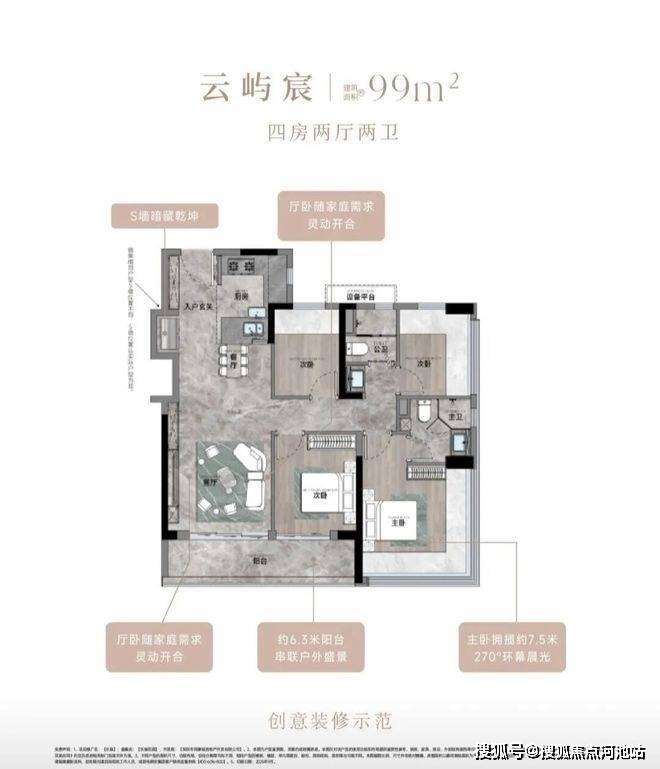 【颐安乐城三期】作为新规之后建设的楼盘,其户型设计颠覆了颐安集团以往的传统,采用全新的2.0+户型设计,得房率高达100%,83平做到了3房2卫,99平做到了4房2卫。所有单位均为3梯6户,确保每一户都是全南向户型,采光充足。