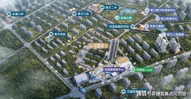 四海臻邸位于蛇口CITY花园城中心旁,位居蛇口成熟居住区域,交通四通八达,生活配套一应俱全,四海公园为伴,同时汇集蛇口40余年沉淀的众多国际学校,是深圳极具国际风情的醇熟住区。