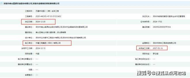 2024年12月位于前海的万星林花园(二期)主体工程批准施工许可。合同开工日期2024年12月15日,合同竣工日期2027年5月16日。