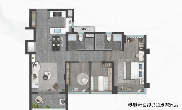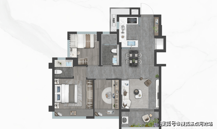 御雲:建面约80㎡,三室两厅1.9卫,创新型1.9卫设计,臻享从容生活