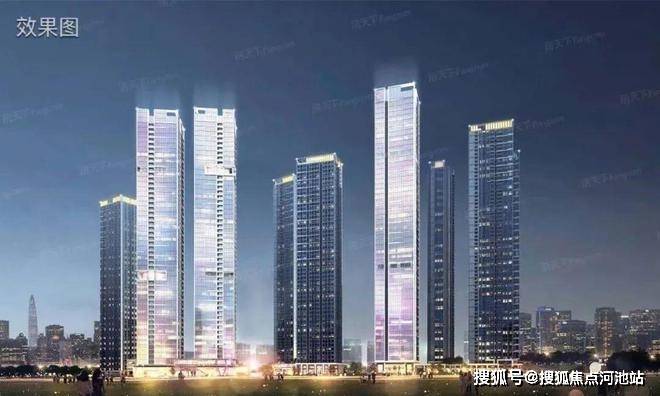 京基天韵府:共由3栋62F的超高层住宅+1栋商办公寓组成,其中1栋A座商办公寓52F,1栋B/C/D座住宅62F,2栋是1所9班制幼儿园。