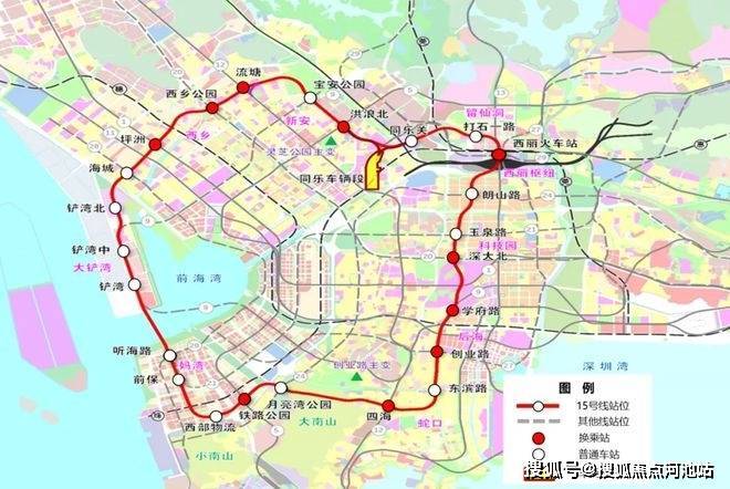 “深圳一环”15号线在建中,其中通港路站(原“西部物流站”)距离项目约500米(百度地图测距),将在2028年开通。附近还规划了24号线、28号线小南山西站交汇站。
