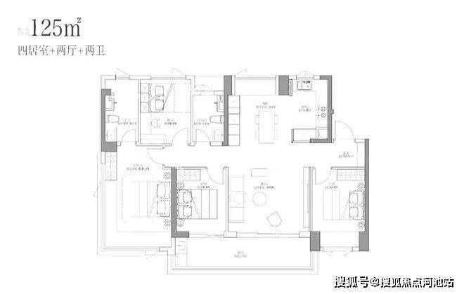 LDKB厅长11.8米:阳台连接客厅+双次卧