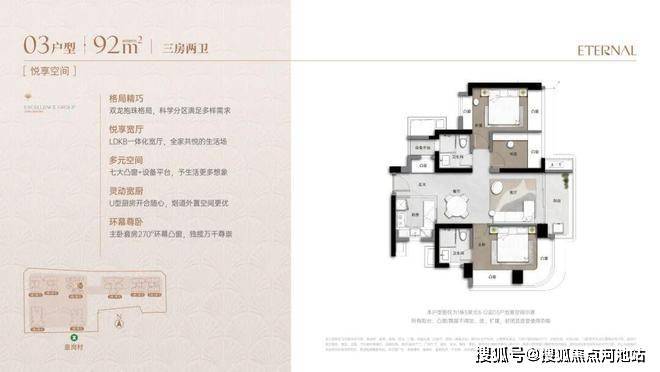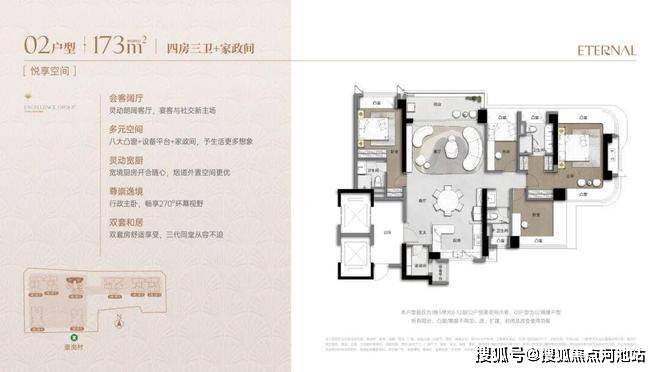 3.户型高使用率(>90%):新规设计下,91-173㎡主力户型配备“弹性方厅+环幕主卧+三面采光”,空间利用率远超周边项目平均水平。