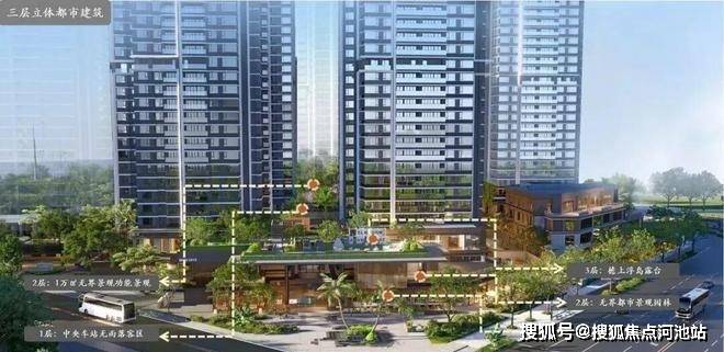 光明首创的”抬高式檐上浮岛花园露台“,打造约1000㎡业主私享花园露台,位于商业街区顶层,约1000㎡的中央车站,社区主入口悬浮立体式入户门院,仪式感归家动线。