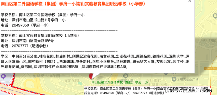 处南二外学府一小和南二外学府中学学区范围内,直线距离500米范围内有省一级学校深圳南山中加学校(学区范围如有变动,以南山区教育局最新颁布政策为准)