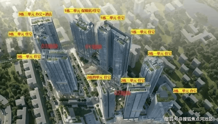规划为3栋超高层塔楼住宅+1栋幼儿园,1栋一、二单元55层,1栋三单元为44层。