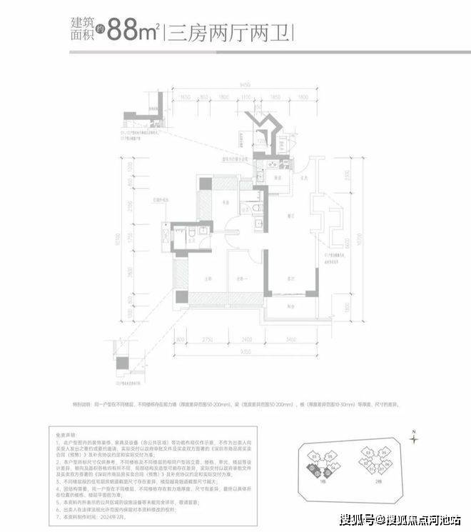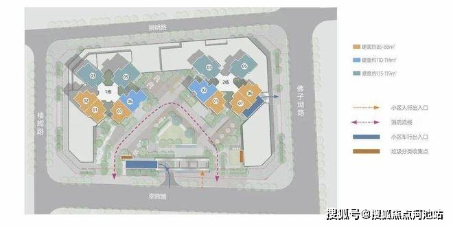 【产品户型】:建筑面积约85-88m²三房两卫、建筑面积约110-114m²四房两卫、建筑面积约113-119㎡四房两卫