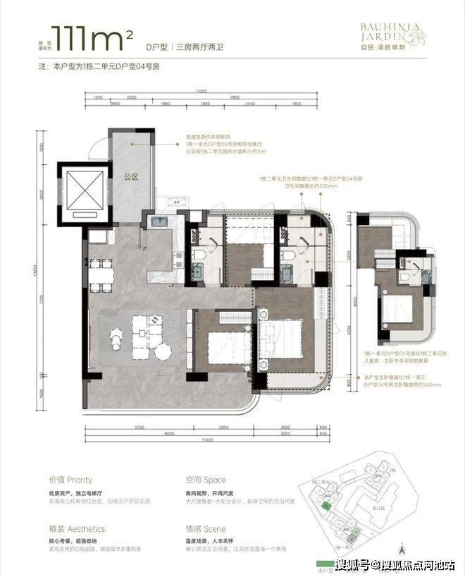 『湾啟紫荆府』项目为带精装修交付,居家必备的家具、家电、设施都是交付即拥有,营销中心设置有111㎡-121㎡-142㎡三个展示样板房,具体精装修交付标准及样板房创意展示空间可参考下图: