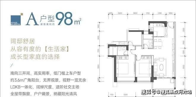 98㎡的3房2厅2卫,设计的是经典竖厅格局,LDKB一体化设计,客厅3.6米开间,三开间朝南,动静分区,3个卧室分别做到了主卧13.69㎡/次卧11.62㎡/次卧5.76㎡(包含墙体飘窗),都不用搭配飘窗做床,L型厨房,卫生间干湿分离,得房率约:89%(包含赠送),西南、东南或正南朝向。