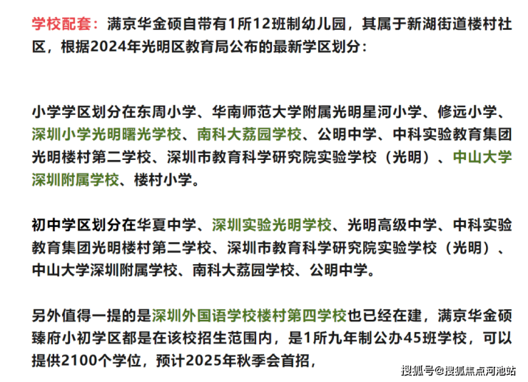 满京华金硕臻府,位于深圳光明区光明科学城“一心两区”的核心区域,紧邻占地208万平方米的科学公园,属于光明规划中“最宜居、居住板块最大”的片区。项目北侧与科学公园仅一街之隔,东、南侧为深圳小学光明学校狮山校区及初中校区,周边市政配套规划密集,如深圳科技馆新馆、国际美术馆等均在建设中,预计2026年前全面落成。
