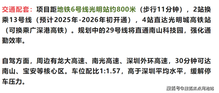 科学公园片区还规划了科技创新文化集群,未来将联动区域内的产业园区(如凤凰城科技园)形成产学研一体化生态。此外,光明城高铁站4站可达,便捷对接南山科技园、留仙洞总部基地等产业高地,进一步强化产城融合优势。