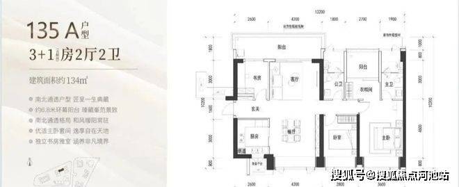135㎡:横厅格局,南北双阳台设计,9.8㎡南向主阳台,三个房间面积分别达到9/11/15㎡,主卧带衣帽间和卫生间,舒适度非常好。