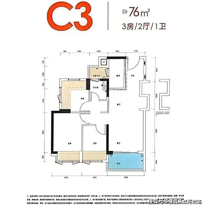 ✅76m²,实得率97%,3房2厅1卫 折后约1️⃣6️⃣6️⃣万起(3栋一单元02户型) 31套,朝东