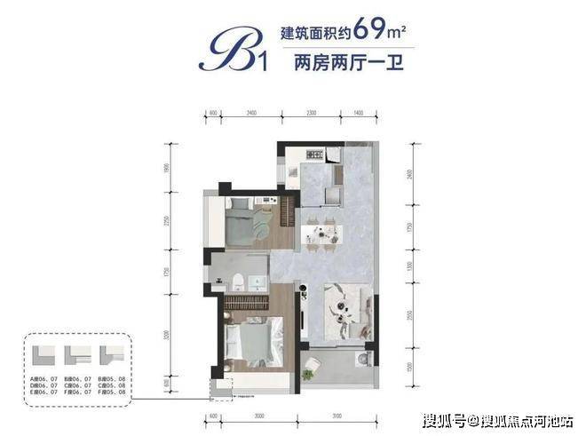 B1、B2、B3户型建筑面积:约69㎡