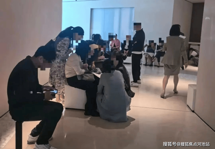 下图为开放首个周末的人流盛况,座谈区及样板间排队等候,体现项目的热度。