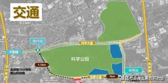 ——地铁6号线光明站1公里,楼村站1.1公里。地铁不算近,步行超过15min;