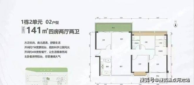 112㎡的4房2厅2卫,1栋1/2单元01户型,设计的是竖厅南北通透格局,进门入户玄关,客厅3.6米开间,餐客分离,餐厨一体设计,四开间朝南,主卧套房带阳台,客厅连接次卧出5.8米长的巨幕大阳台,U型厨房,卫生间干湿分离,阳台主朝东北向看科学公园。
