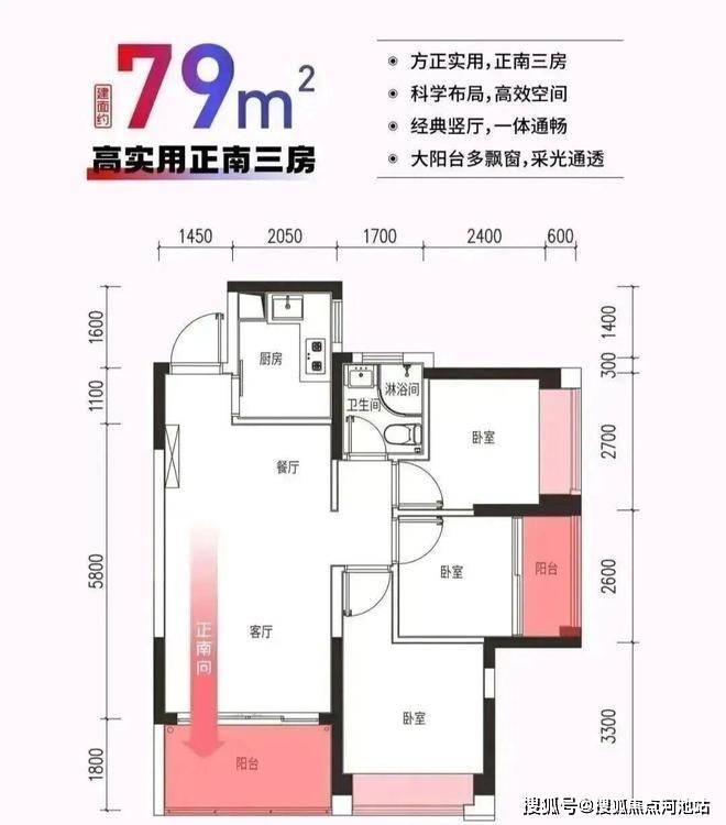 1、户型:建筑面积约78-79㎡极致三房两厅一卫,稀缺高性价比三房