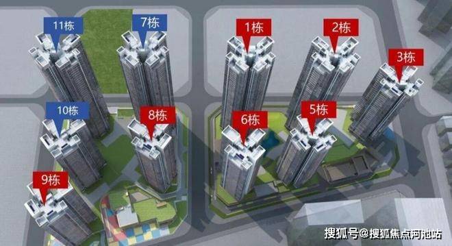 西区:占地2.2万㎡,容积率5.16,包含住宅、商业、幼儿园学校和其它基础配套设施。7栋栋总高47F,3T6户;8栋、9栋、10栋总高32F,2T5户;11栋总高46F,3T6户,2T5户;1栋是幼儿园。