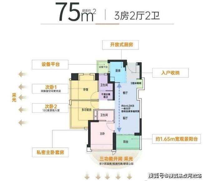 金光华溪山禾玺项目主推建面约72-105㎡的3-4房,根据户型测算,产品基本在98%使用率,最高实用率甚至能突破100%,相较于新规前普遍75%左右的得房率,堪称是“王炸”级别的存在!
