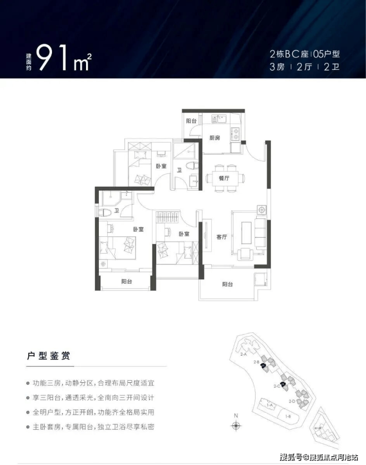爆款78㎡三房:竖厅+三开间朝南,厨房带小阳台,总价300万出头。