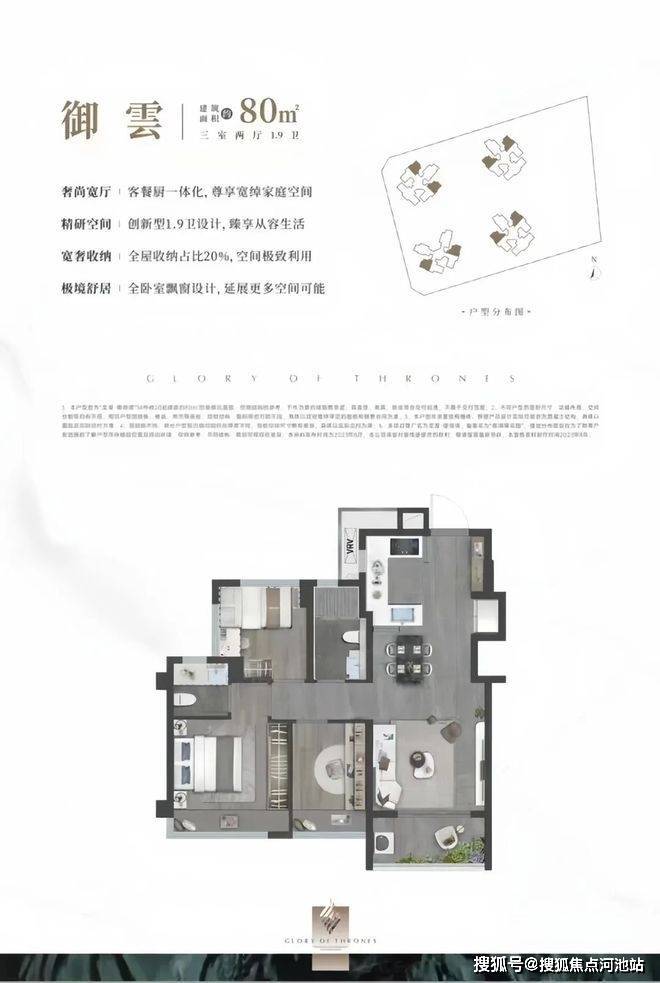 其中,约80㎡户型做到了光明独有的1.9卫,将空间利用到极致。