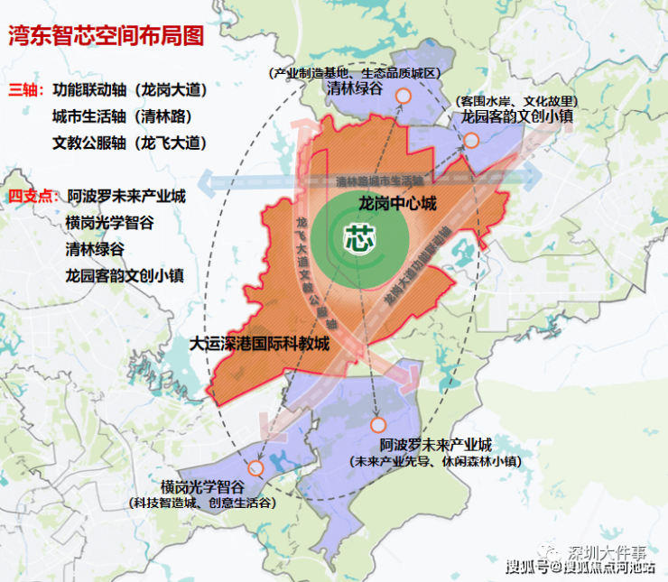 龙岗区为东进战略核心区,“一芯两核多支点”战略布局,中心城定位“湾东智芯”,打造现代化国际化“城市新客厅”,也将汇聚更高端人才、产业、资金,前景可鉴。