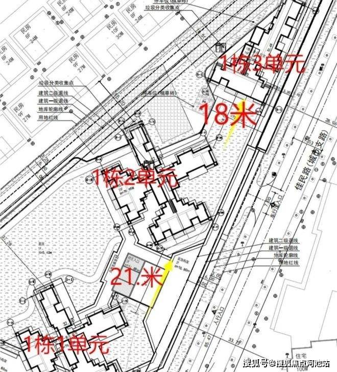 从楼栋的分布看,1栋2单元84平主卧到隔圳新村的间距是16.2米,1栋3单元有37米,3单元到金地上塘道二期是28.9米,1单元的78平离金地上塘道二期也有33米,这个距离还包含了佳民路本身的路宽,所以都算是“握手楼”的范畴,站在马路上就能看见里面的阳台和窗户。