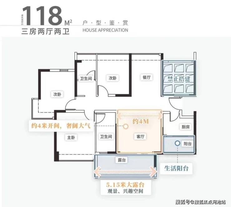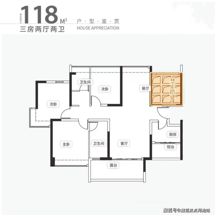 比如,同是建面118㎡的户型: