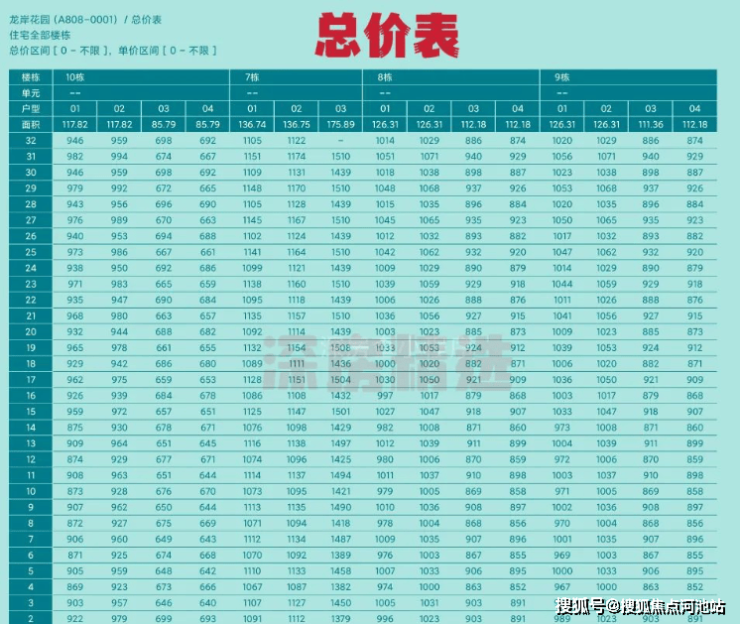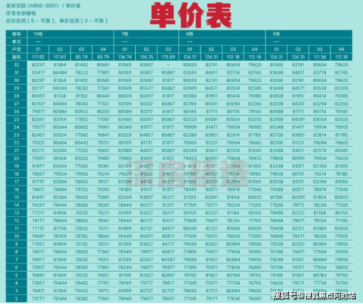 龙岸君粼备案价表如下