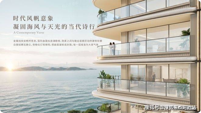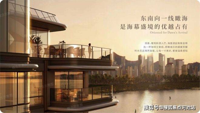 豪宅立面:项目采用大面积玻璃幕墙+金属线条组合立面,既符合现代化审美、豪宅配置,也能有效规避因临海带来的潮气与盐蚀,阳台采用无柱化环幕玻璃围栏,最大程度发挥项目临海观景优势。