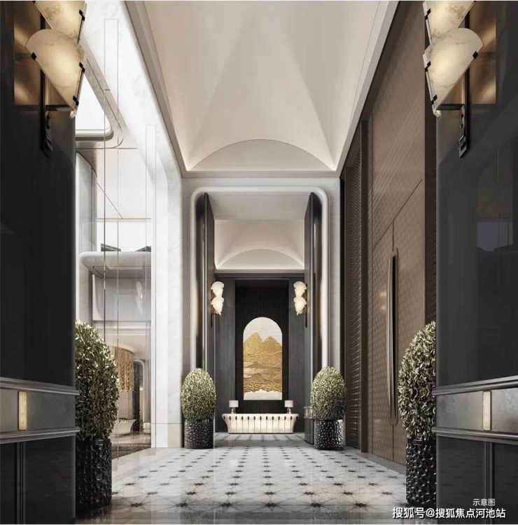 三重归家礼序(从车库、一楼、二楼架空层均设有酒店式大堂,营造更多归家仪式)。