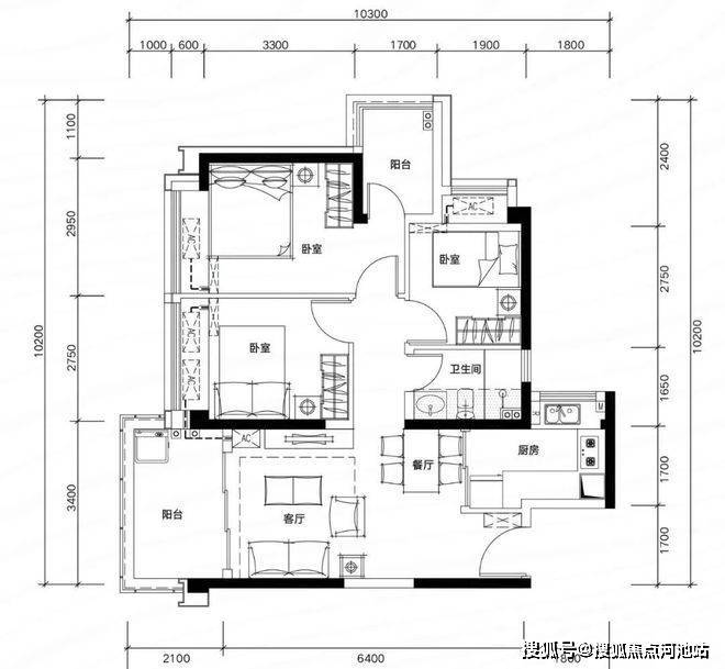 3、松茂御城的户型得房率虽然明面上看备案数据是在77.27-79.26%,但是实际得房率是达到了100%的,也是光明得房率最高的楼盘,绝对名副其实,户型也做的很很好。