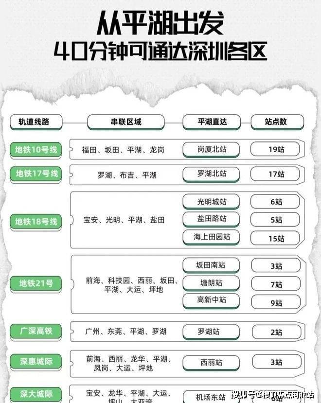 深圳布局了14个综合交通枢纽,平湖站升级为深圳的8个高铁枢纽之一,“1高铁、2城际、3地铁、4快速路”的配置,让平湖枢纽跻身为继福田、罗湖口岸、深圳北站之后的深圳第四大交通枢纽中心(平湖白泥坑还规划有深大城际线路)。