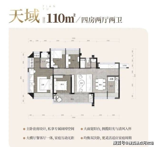 在产品方面,打造建面约80-110㎡超高得房率的3-4房产品,有多面宽、大阳台等户型优势;以及配置全屋中央空调,品质交付。