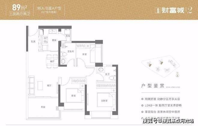 89㎡的3房2厅2卫,折后总价288-317万/套,单价3.23-3.56万/㎡。