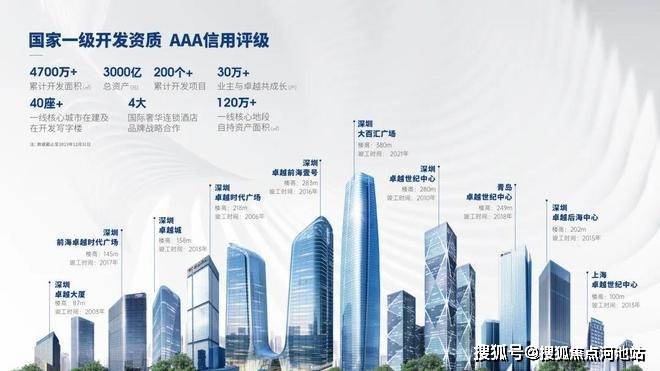 战略布局全国一二线大中城市,累计开发200个+精品项目,布局地产开发、城市更新、资产运营、商企服务四大业态,成就CBD地标专家。