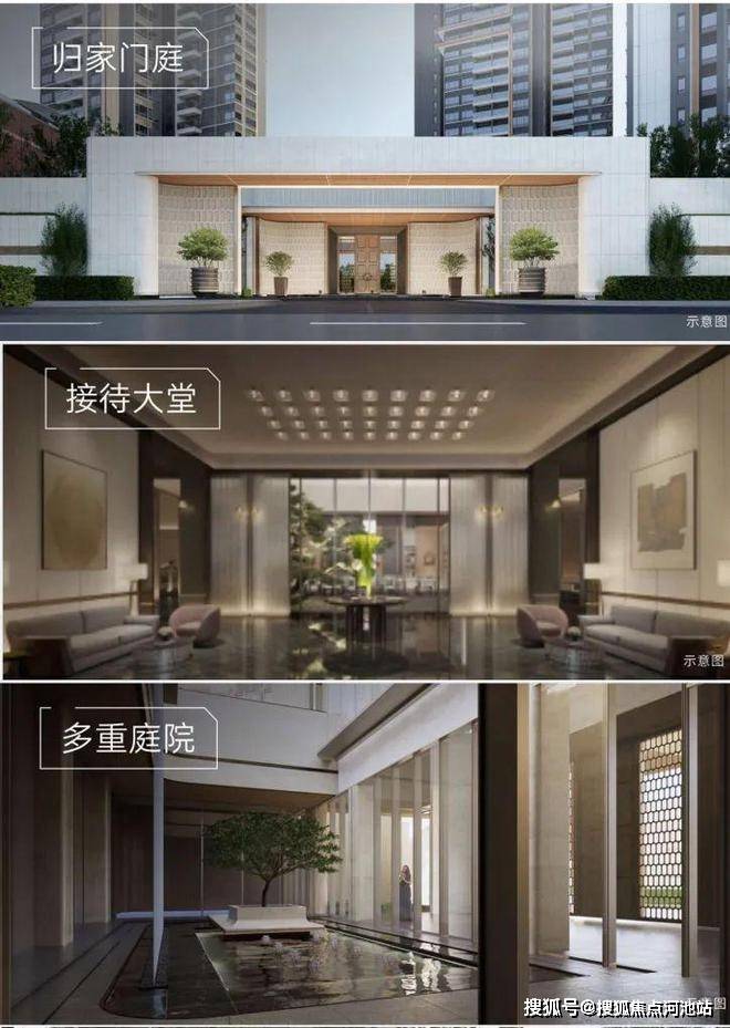 步行归家礼序,尊贵入户体验:仪式门廊→接待大堂→下沉庭院/会所→园林景观会客厅→架空层泛会所→园林层单元大堂