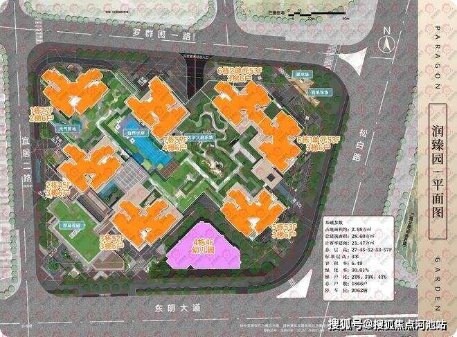 『润宏城·润臻园』有8座建筑,除幼儿园其它均为商品房,1836户,配2062辆车位。