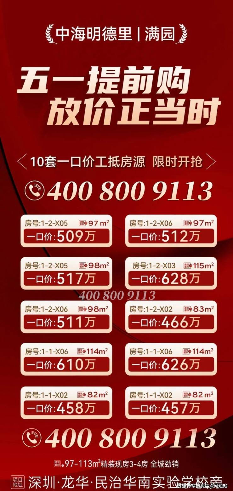 如需了解本楼盘更多详情,欢迎来电咨询龙华中海·明德里开发商售楼处免费400咨询/预约电话:400-800-9113(已认证)中介请勿扰,因近期参观的人员太多,本项目营销中心暂不接受临时到访,为不耽误您的行程,过来楼盘现场参观样板房请务必记得提前来电预约,预约看房的话最终房价还能更加优惠,包您满意!