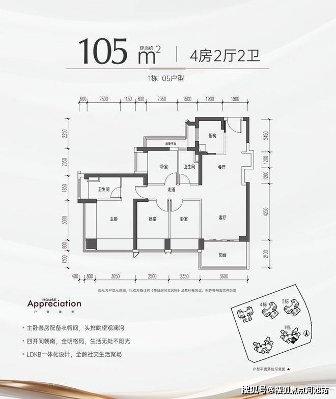 朝向景观亮点,南北通格局,看内部园林安静生活体验,2.5功能区横向采光