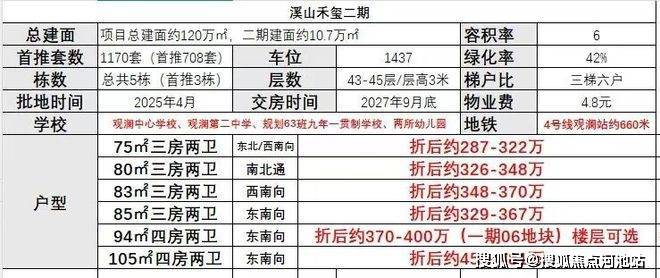 金光华溪山禾玺是金光华集团与星乔地产联合开发的百万方综合大城生活圈首发之作,位于龙华观澜街道布新路与布朗路交汇处总占地面积约0.95万㎡,总建筑面积约6.32万㎡,容积率4.31,绿化率42%。项目规划2栋42层超高层住宅,共454户,梯户比为3梯6户,车位配比1:0.99,预计2026年底精装交付。