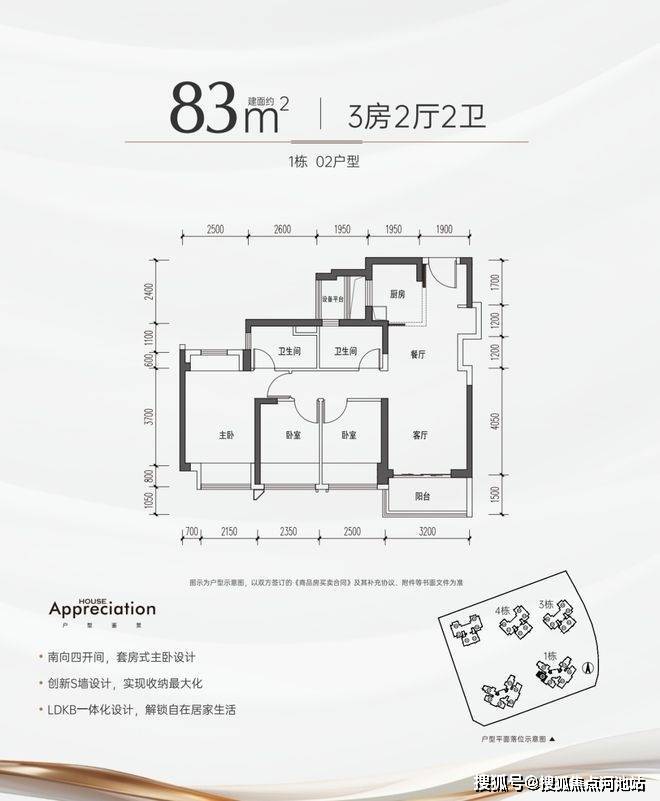 2、超高使用率,按照新规设计,75㎡-95㎡3-4房,能满足不同家庭居住需求,75㎡做到三房二卫,95㎡做到四房两卫;