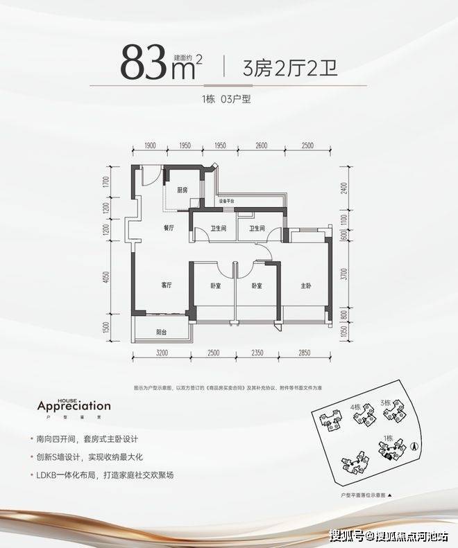 【建筑面积83㎡3房2卫】