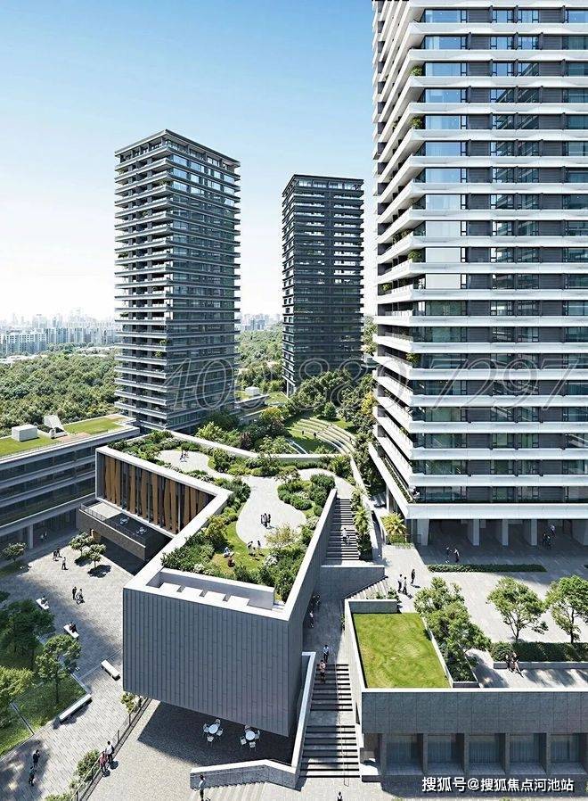 本小区建筑限高80米,采用高层塔楼与多层板楼结合的设计,由北京OPEN建筑事务所操刀,以“方塔”布局和“多个地面”台地系统为特色,强调公共空间与生态融合,颜值品质拉满。